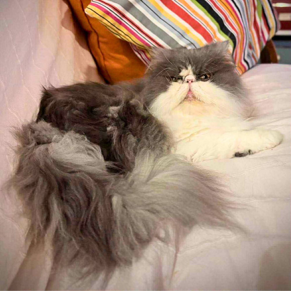 Her coat has not been difficult to manage but will need consistent brushing and combing to ensure she remains pain free in her floofier times. She will also need a family who are able to ensure her face stays nice and clean with a quick wipe throughout the week.
